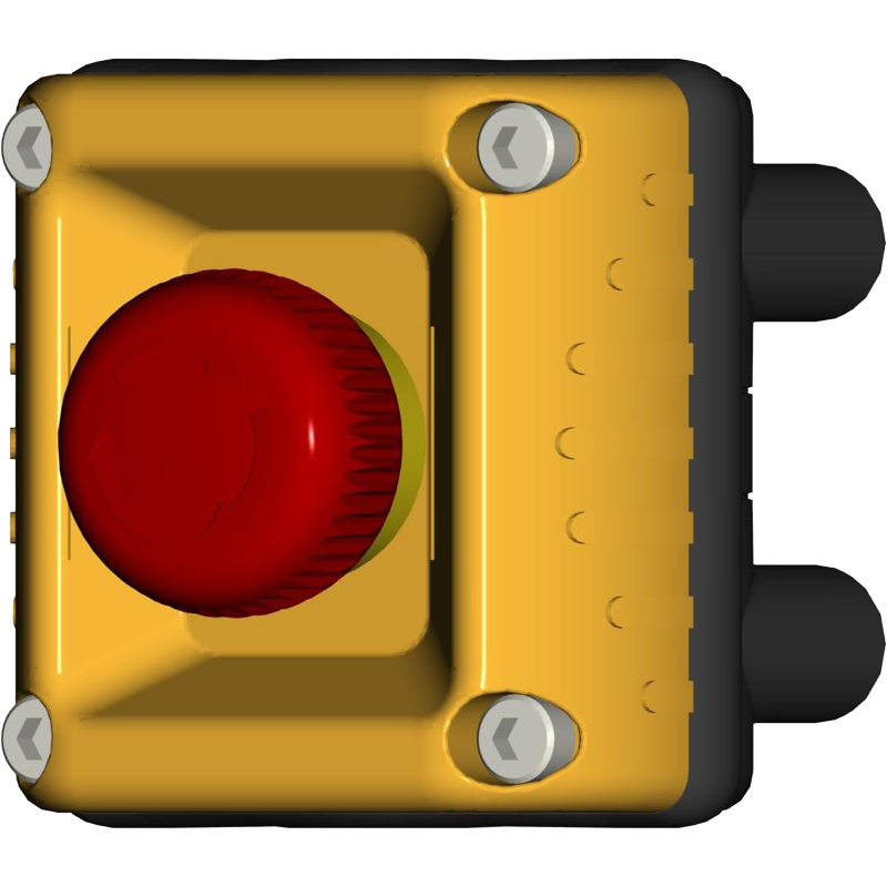 - The emergency stop mushroom pushbutton complies with standard ISO 13850.